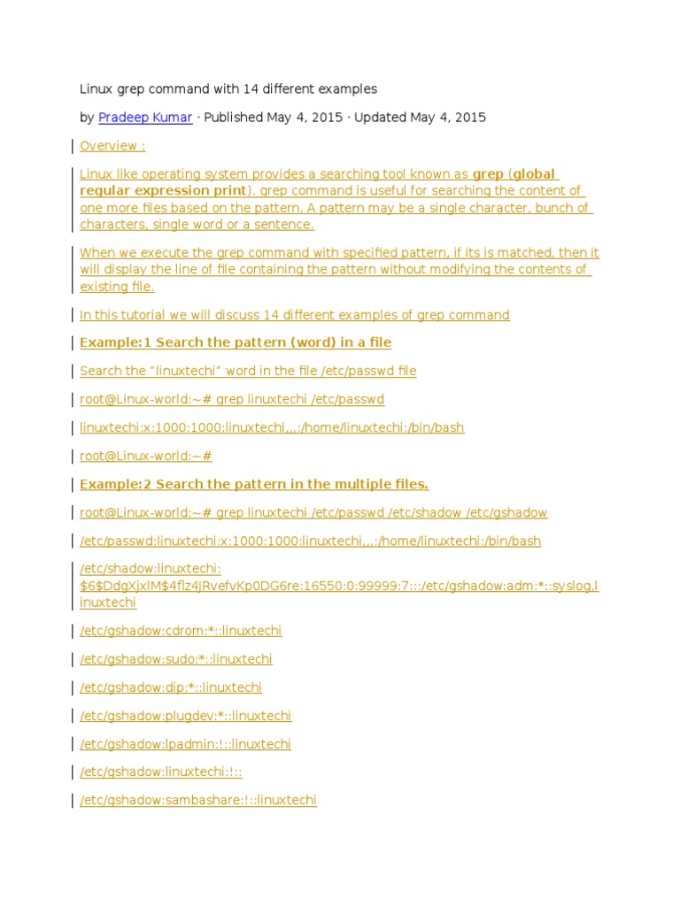 Linux Grep Examples / Linux Grep Command Examples / Grep command in linux is used to search grep is command line utility in linux and unix systems which is used to print lines from a file after.